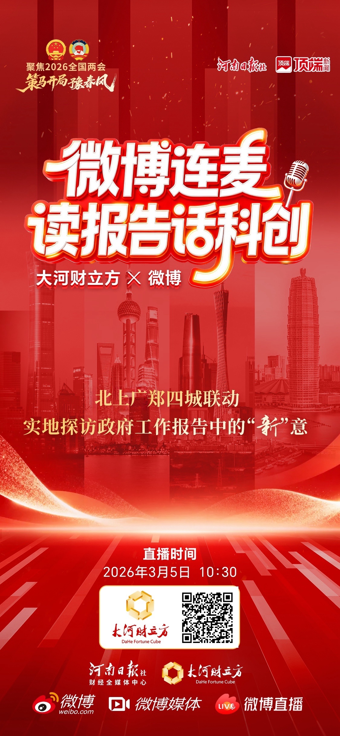 河南日报社财经全媒体中心·大河财立方邀请贾康、徐洪才等经济学家解读报告亮点,北上广+郑州4地直播,实地探访报告中的“新”意。