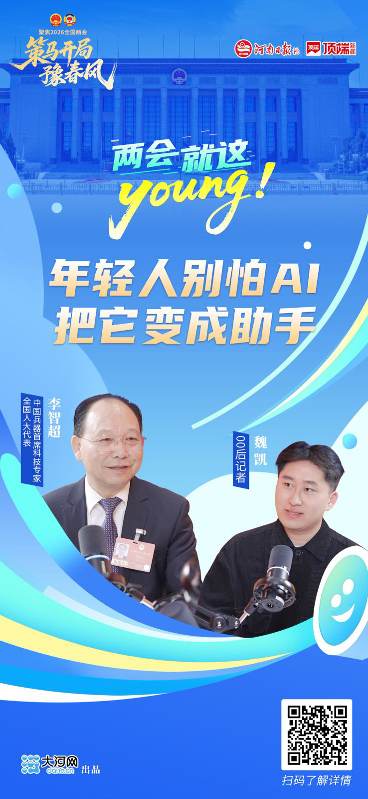 大河网“两会,就这Young!”系列报道对话全国人大代表、中国兵器首席科技专家李智超。AI时代已经到来,他鼓励年轻人主动拥抱AI。
