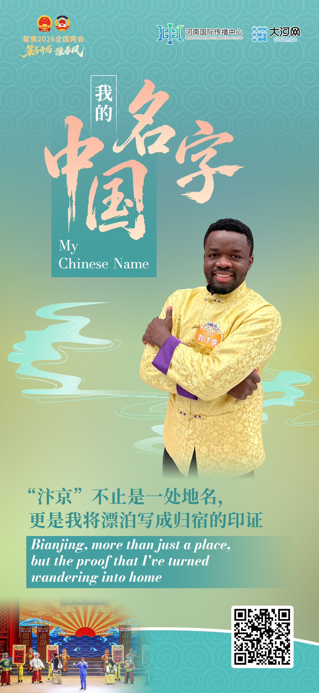 河南国际传播中心、大河网联合推出“我的中国名字”系列报道,关注唱起豫剧来字正腔圆的喀麦隆小伙“刘汴京”,他用名字将漂泊写成归宿。