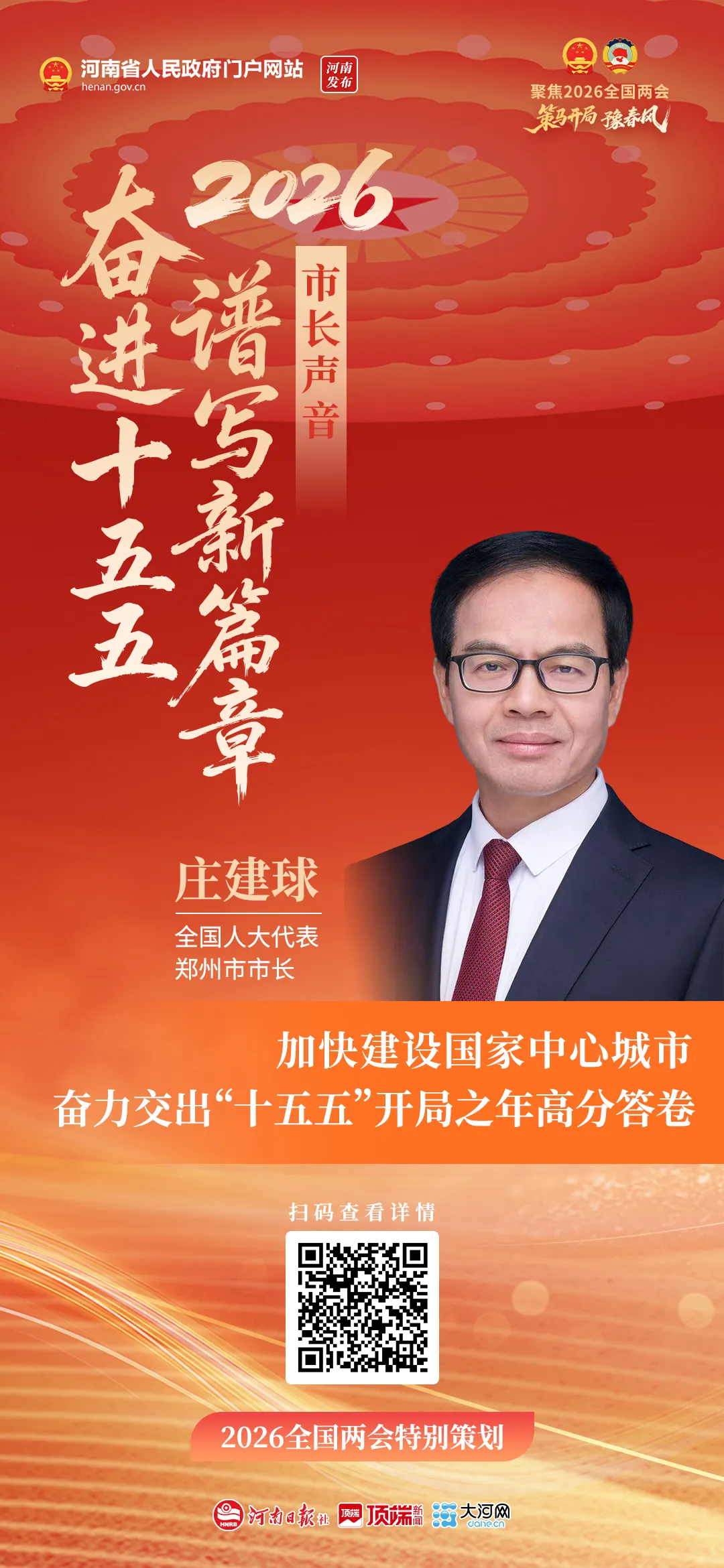 大河网联合河南政府网、各省辖市(示范区)政府网推出“2026市长声音”主题访谈活动。全国人大代表、郑州市市长庄建球接受采访时表示,郑州将加快建设国家中心城市,凝心聚力,真抓实干,奋力交出“十五五”开局之年高分答卷。