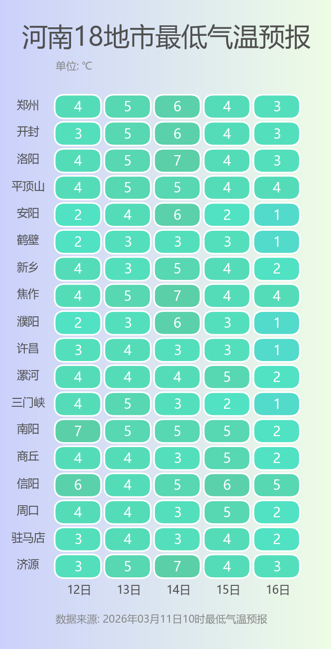 预报来源:河南省气象台2026年3月11日12时预报