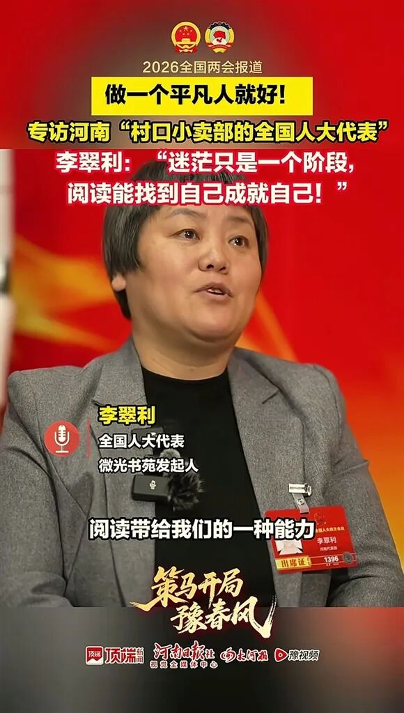 “迷茫只是一个阶段,阅读能找到自己成就自己!”十八年初心不改,来自安阳的全国人大代表李翠利,在村口自家小卖部开办免费“微光书苑”,用一点微光点亮乡村孩子的文化星空,事迹感动全网。(详情)