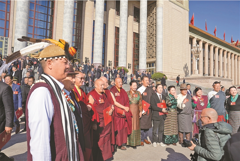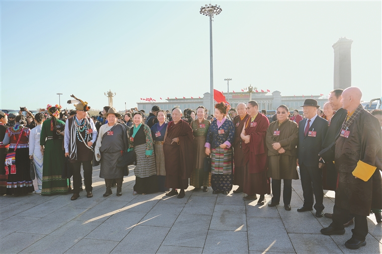 图为住藏全国政协委员在人民大会堂前合影。记者 陶玥 摄