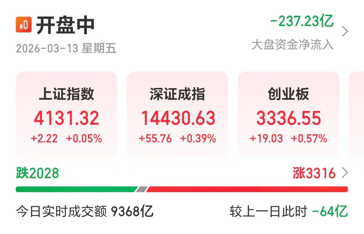 【大河财立方消息】3月13日,A股指数低开高走,沪指拉升翻红,深成指涨超0.3%,创业板指拉升涨0.57%,科创综指跌0.25%。化工、锂电、钢铁等方向涨幅居前,沪深京三市上涨个股近3300只。