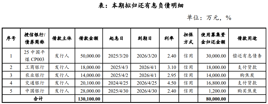 本期中票债券简称为“26中国平煤MTN004”,发行金额8亿元,期限5年,利率3.10%;债券起息日为2026年3月17日,到期日为2031年3月17日;债券簿记管理人、主承销商为国泰海通,债券募集资金将全部用于偿还有息债务。