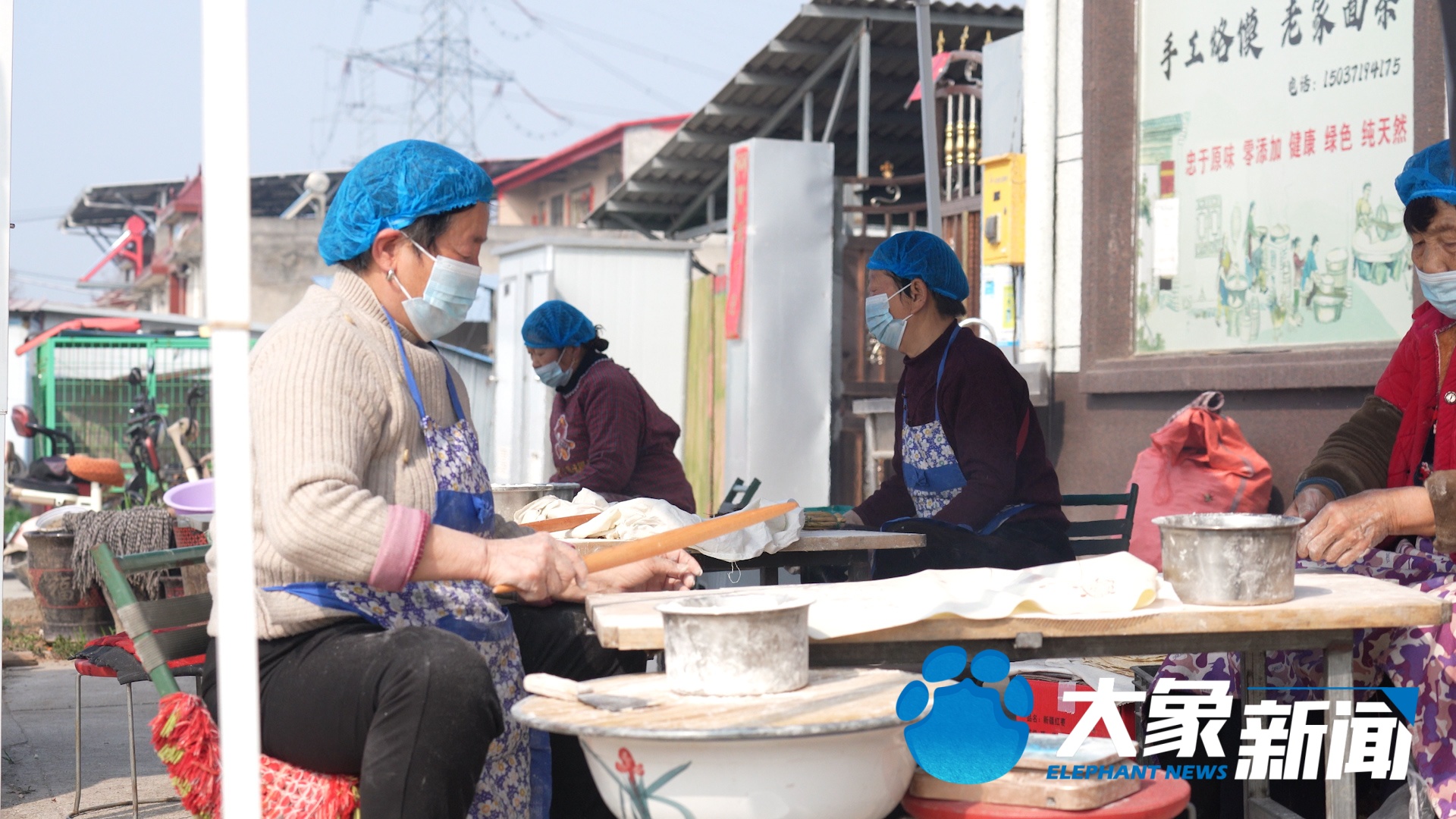 这是河南新密市曲梁镇周庄村老年烙馍队忙活的场景。