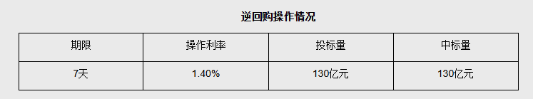 【大河财立方消息】3月19日,中国人民银行以固定利率、数量招标方式开展了130亿元7天期逆回购操作,操作利率1.40%,与此前持平。因今日有245亿元7天期逆回购到期,据此计算,当日实现净回笼115亿元。