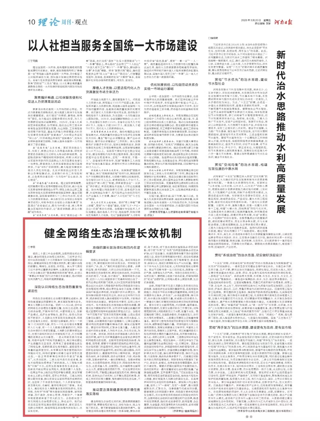 党的二十届三中全会强调,加强网络空间法治建设,健全网络生态治理长效机制。习近平总书记在中央政治局第二十三次集体学习时发表重要讲话指出,要健全网络生态治理长效机制,着力提升治理的前瞻性、精准性、系统性、协同性。深入学习贯彻习近平总书记重要讲话精神,认真落实省委十一届十次全会提出的“营造清朗网络环境”要求,必须以“事事心中有底”的行动力强化机制建设,推动网络空间风清气正,网络环境清朗健康。