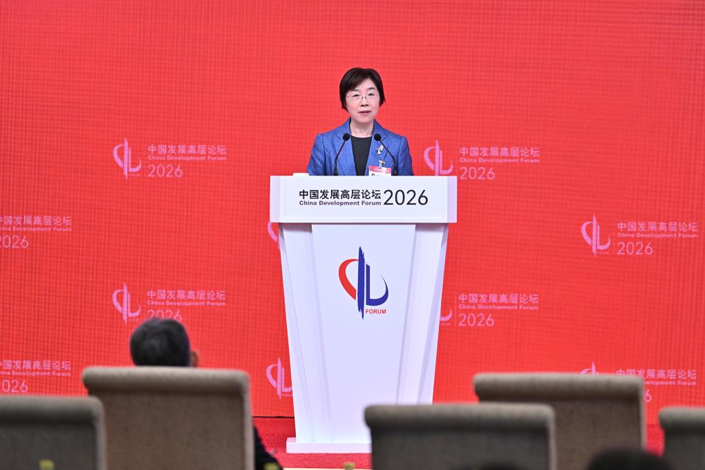 3月22日,新开发银行行长罗塞芙在论坛的宏观政策与高质量发展专题研讨会上发言。新华社记者 李鑫 摄
