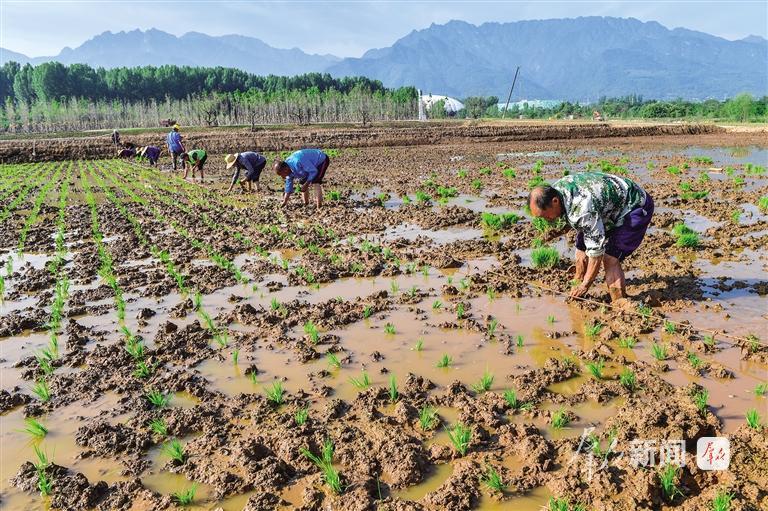 继续前行,五台古镇不远处的一片空地是另一番热闹景象。从3月4日开始,几十名工人就在这里忙碌,先是平整土地,接着是栽树种草。白皮松、桂花、樱花、五角枫,一棵棵树苗被小心地放进挖好的树坑里,培土、浇水、踩实。这是长安区山前中部受损区湿地修复、水源涵养功能提升与土地整治项目的收官之战。
