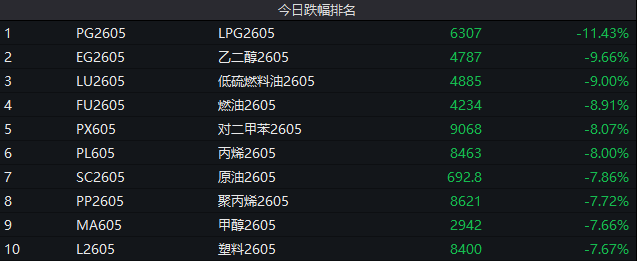 【大河财立方消息】3月25日,国内商品期货开盘多数下跌,能化板块大幅下挫,液化气跌超11%,LU燃油跌超9%,燃料油跌超8%,塑料、聚丙烯、原油跌超7%,集运欧线跌超6%。涨幅方面,沪银、钯涨超7%,铂涨超6%,碳酸锂、沪金涨超3%。