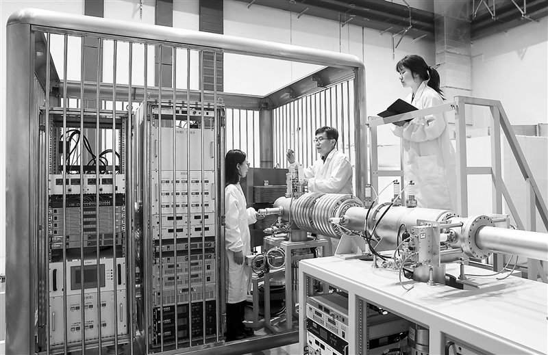 图为中国原子能科学研究院瑞昌核物理应用研究院的科研人员正在对设备进行检测调试。