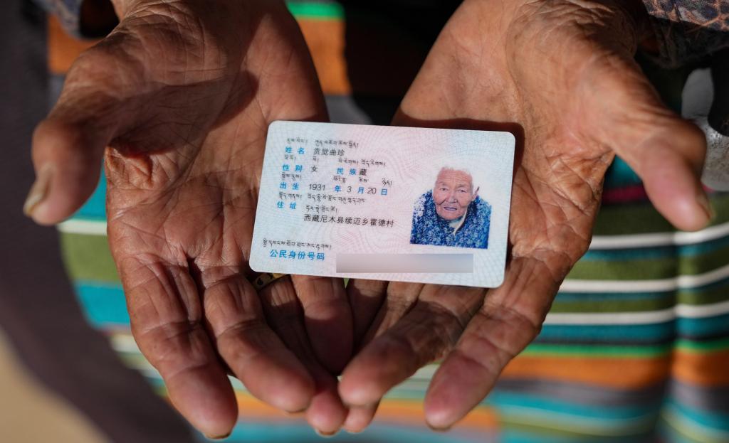 贡觉曲珍的身份证(3月6日摄)。