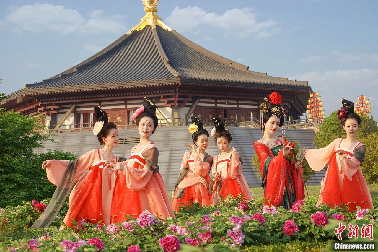 开封清明上河园“大宋簪花游园会”吸引游客。 袁航 摄
