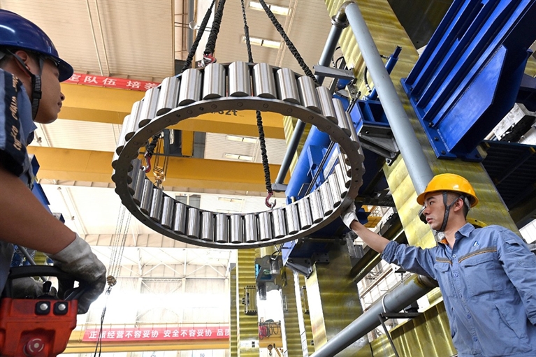 中色科技工作人员正在进行轧机支承辊轴承装配作业。 洛阳自创区供图