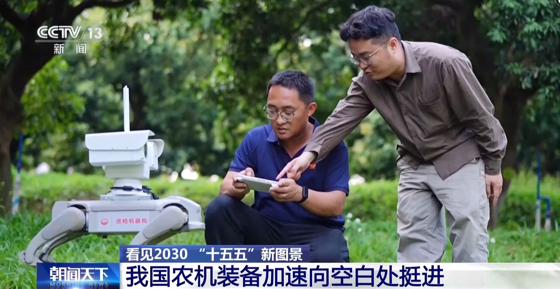 新机遇不仅来自空中,在地面上,科研人员最新研发的荔枝园巡园机器狗也在加紧测试。由于果树长势茂密,传统机械难以进入,农户巡田费时费力。为此,研发人员把土壤养分检测、病虫害识别、作物长势监测等功能模块,搭载到灵活小巧的机器狗上,让它钻进果园,完成日常巡田,自动生成检测报告。