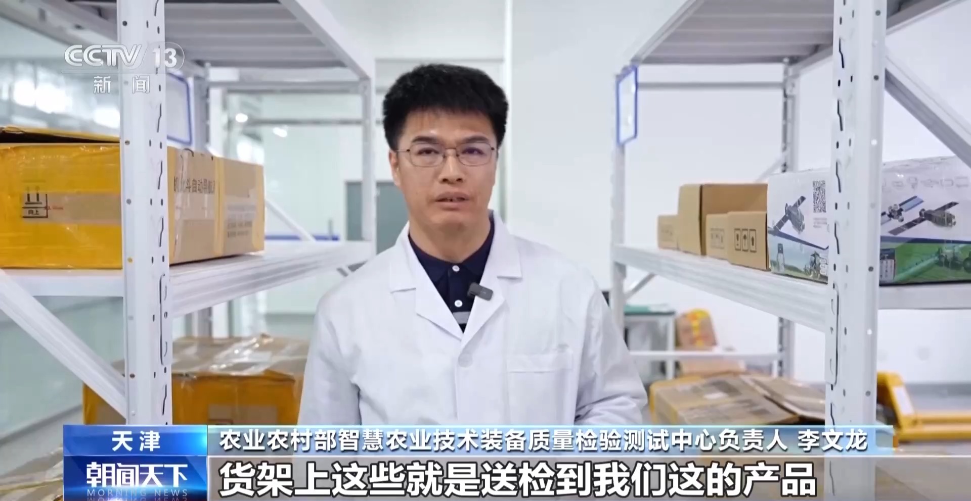农业农村部智慧农业技术装备质量检验测试中心负责人李文龙:货架上这些就是送检到我们这的产品,来自全国10个省份,25家企业,主要包括农机辅助驾驶系统、农机定位监测终端等。这些年来我们国家的智慧农业技术装备发展得特别迅速,诞生了一些初创企业,产品的型号也不断增加。