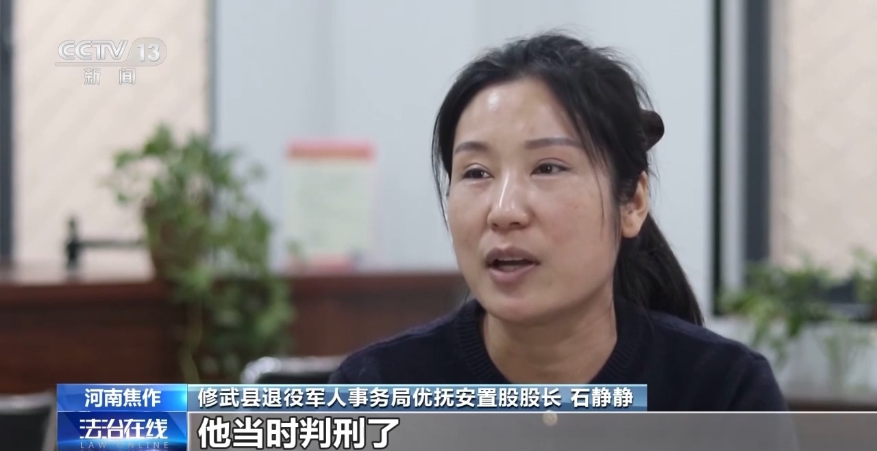 修武县退役军人事务局优抚安置股股长石静静:他当时判刑了,法院肯定会有这个判决书,当时的目标就是去法院查找这个问题。