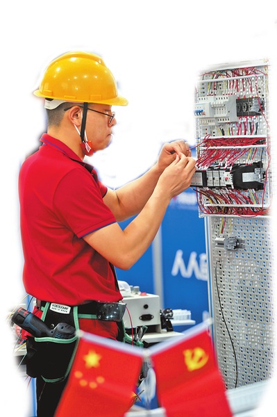河南省第一届职业技能大赛电工项目选手参赛现场。(图片来源:河南日报)