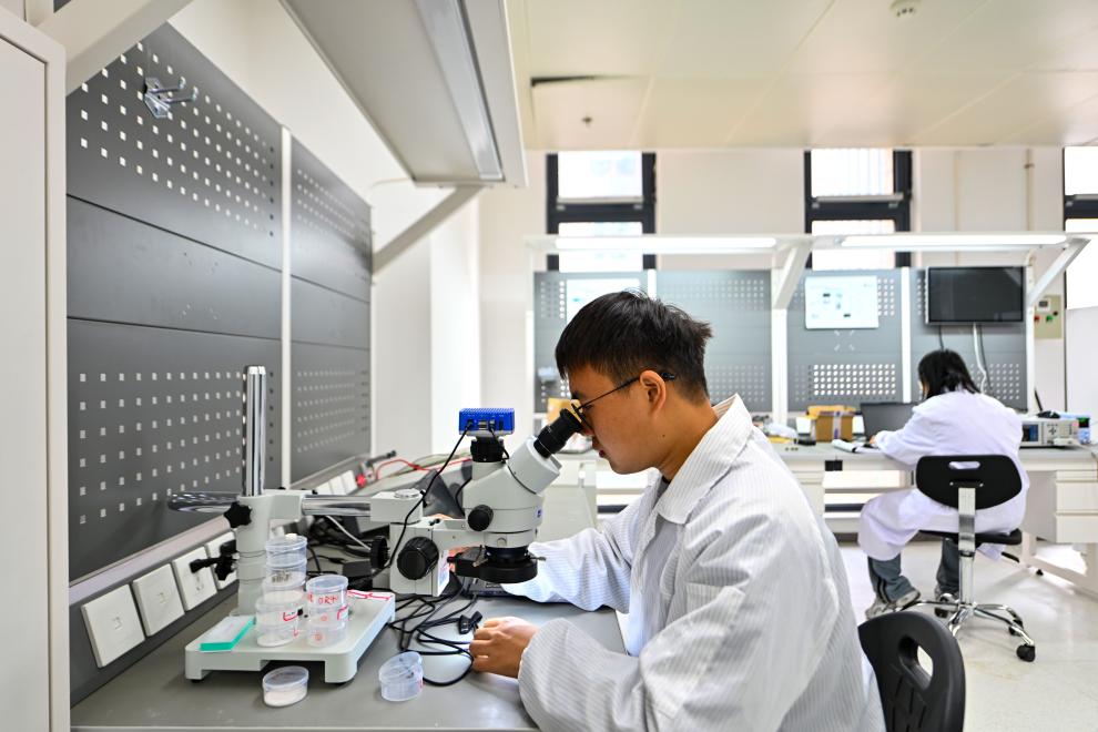 2月27日,在天津滨海高新区新智感知科技产业园的一处实验室,工作人员对产品进行测试。新华社记者 赵子硕 摄
