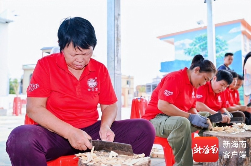 沉香一直是加乐镇重要的经济产业,宋代文豪苏东坡在近千年前便在其所著的《沉香山子赋》中,以“宛彼小山,巉然可欣”来高度评价海南沉香。作为“中国沉香之乡”的核心产区,加乐镇还以本届文化月活动为纽带,让“三香”文化成为加乐年轻一代的深刻认知,成为产业发展的鲜明标识。在文化月活动的“香脉相承”香文化进校园活动中,加乐镇中心小学的广大学子们沉浸式体验了线香制作流程,了解了家乡经济产业的发展历史;在钩香技能竞赛中,数十名手工艺人同台竞技,一手持沉香木香胚,一手持造型别致的勾刀,仔细地用手腕与手指捻动勾刀,展示传统工艺手法。活动期间,乐香里沉香加工厂也正式揭牌,标志着加乐沉香产业进一步向规模化、品牌化、标准化发展的新阶段迈进。
