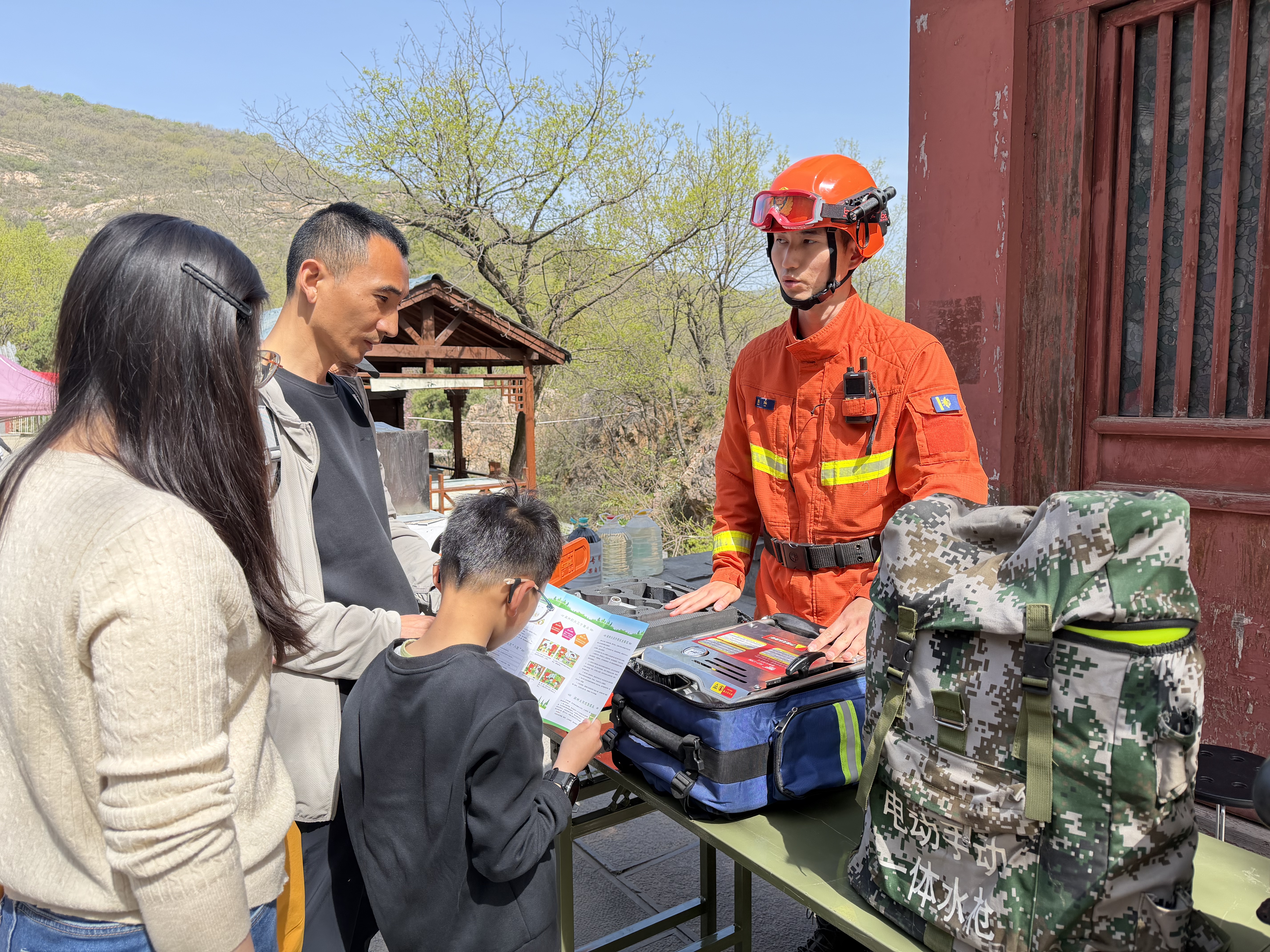 在做好巡护的同时,指战员们还将防火宣传融入日常工作。“开展流动宣传,就是为了让防火理念融进山林的烟火气。”李涛介绍,嵩山景区的检票口、观景台、休息区,都是他们的“宣传阵地”。在旅游高峰期,指战员们向游客发放宣传资料,结合典型案例讲解林区用火禁忌,提醒游客不携带火种、不在林区吸烟,引导群众共同参与防火;还联合景区建立“消防 + 景区”联防联控机制,在关键点位设置宣传岗,提升群防群控能力。