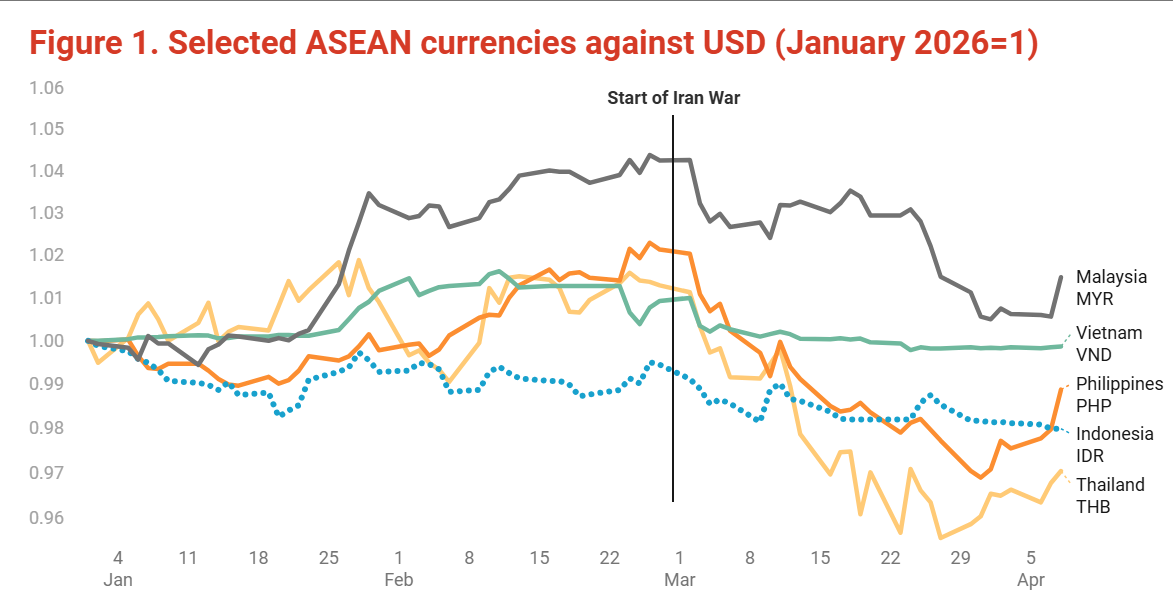 文章指出,印尼和菲律宾等高度依赖能源进口的国家更容易受到价格冲击的影响。文章说,自美以伊冲突爆发以来,泰铢、菲律宾比索、越南盾和印尼盾对美元分别贬值。资本外流至美国加剧了这些国家经常账户的恶化。