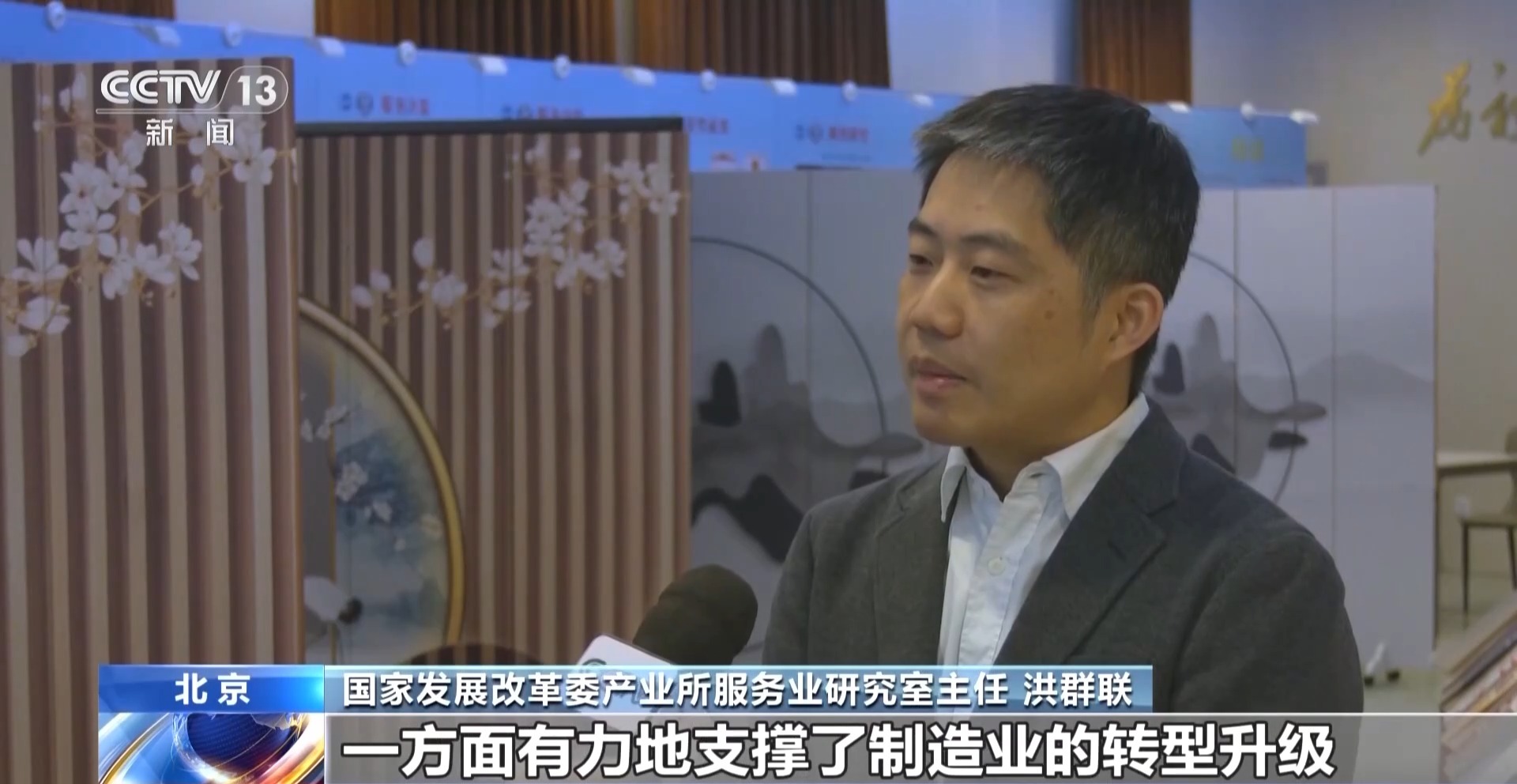 国家发展改革委产业所服务业研究室主任洪群联:现代服务业包括科技、信息、商务这些生产性服务业增长很强劲,它们都同制造业深度融合,一方面有力支撑了制造业的转型升级,另一方面极大改善了整个产业结构,然后对整个产业的提质增效起到很大的支撑作用。