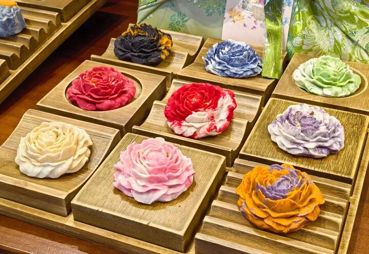 洛阳南北李记文创点心店内售卖的牡丹花酥。袁月明摄