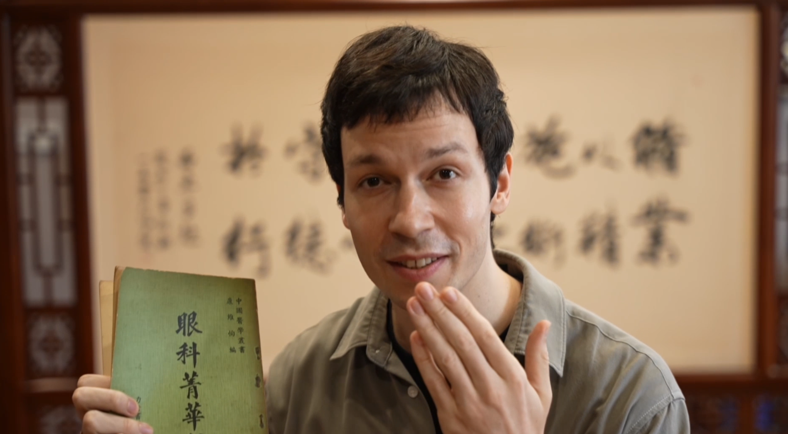 克里斯:这个是清朝末年的一本书,叫做《眼科菁华录》。这本书里刚好有一些我之前研究过的东西,比如说眼睛它分为五个轮。这个也是中医眼科当中很重要的理论之一。