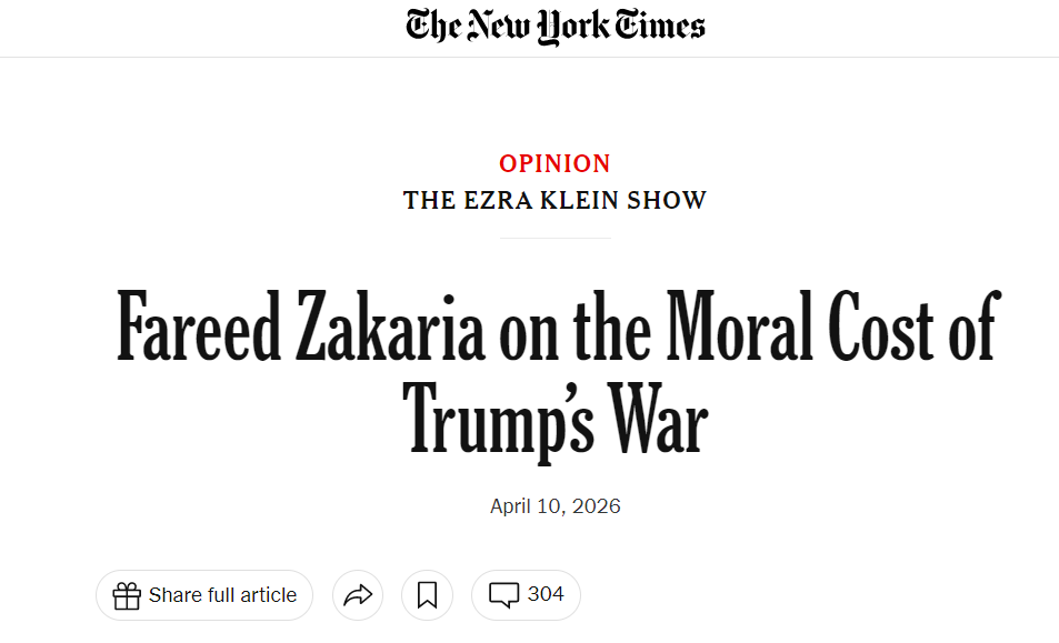 4月10日,扎卡里亚在其发表在《华盛顿邮报》上的署名文章中进一步剖析了美国领导人的“交易本质”,揭示了美国对权力的病态理解。