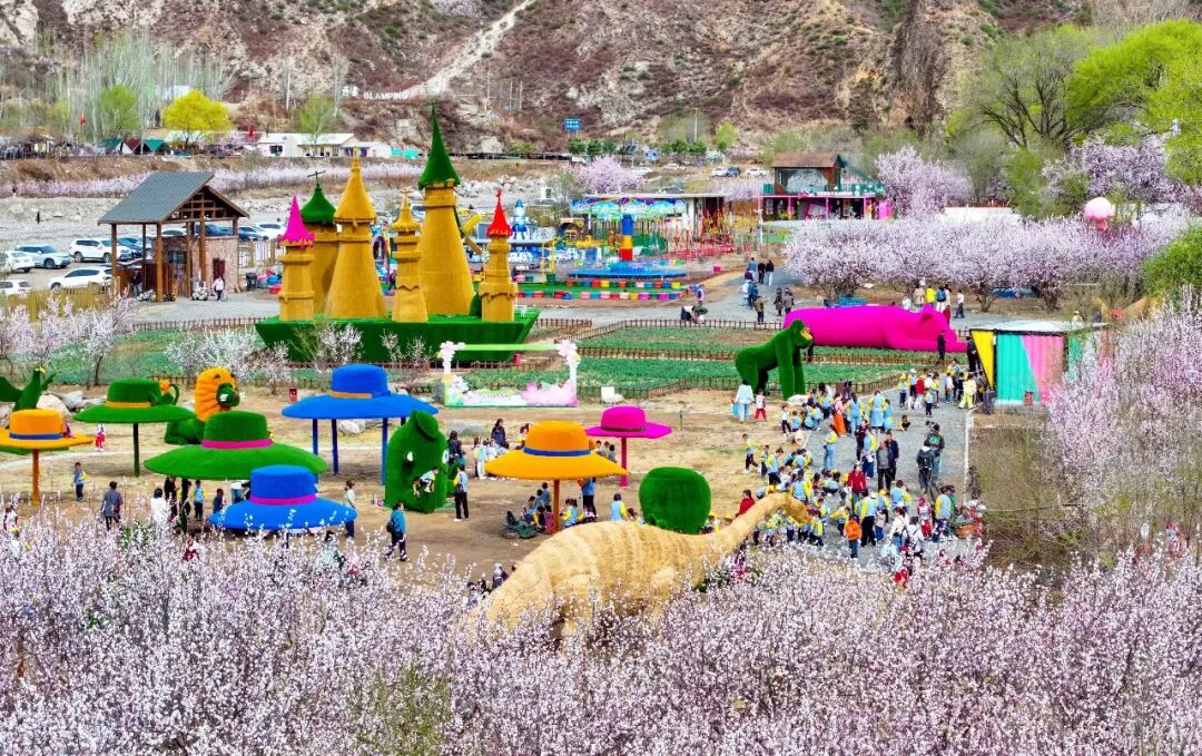 游客在内蒙古呼和浩特市回民区攸攸板镇东乌素图村乌素图杏花谷游览。王正摄