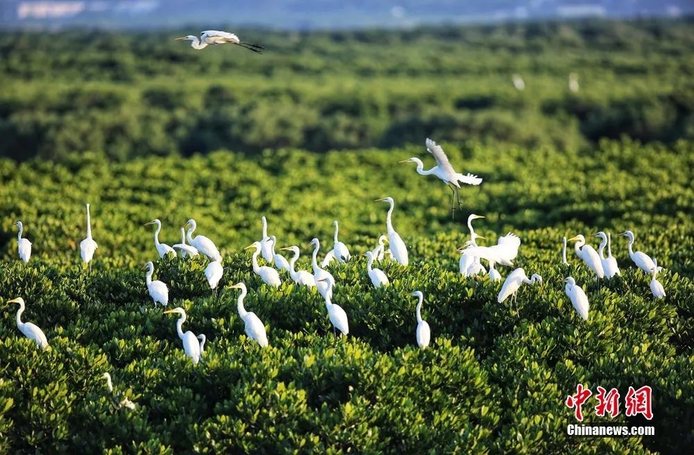 东方市四必湾,海南最大的黑脸琵鹭越冬栖息地。东方市融媒体中心 供图